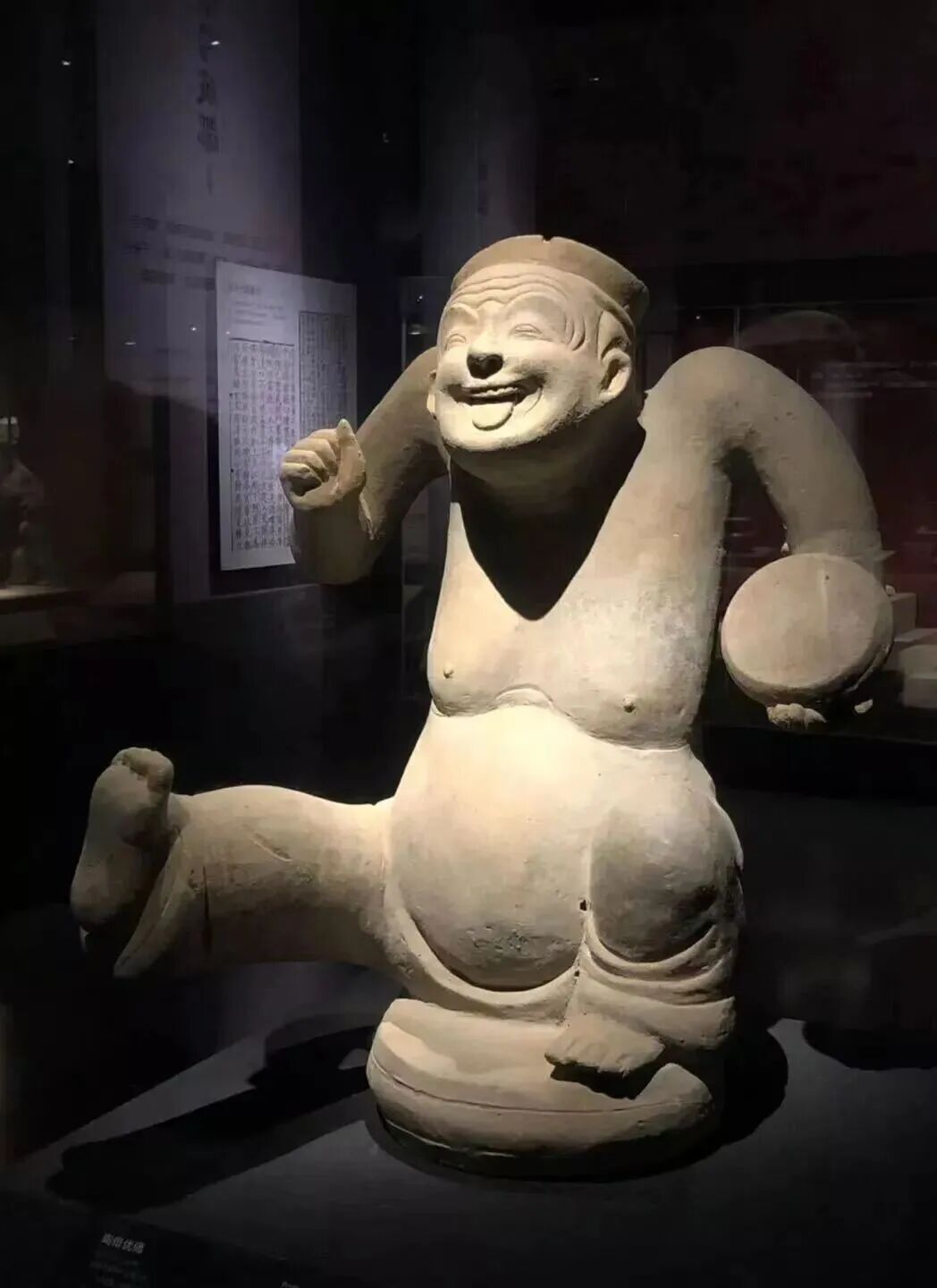类似的坐式陶俑在成都出土了不少,说唱的,吹笛子的、抚琴的、说书的,他们有一个共性——脸上总是带着笑容,有的甚至笑到眼睛眯成一条缝。
