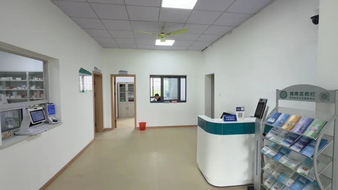 走进朱泾镇牡丹村三浜卫生室,眼前的景象令人耳目一新:宽敞明亮的候诊厅摆放着整齐的座椅,墙上张贴着清晰的就诊指引和健康科普海报;全科诊室、中医诊室、治疗室、药房分区明确、干净整洁,智能化健康自检设备整齐摆放,昔日狭小拥挤、设施简陋的旧卫生室,成功变身功能齐全、温馨舒适的“家门口健康驿站”。