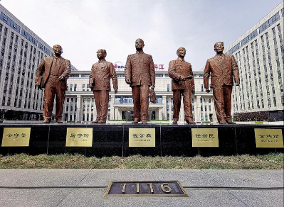 这是目前国内首座钱老与“航天四老”一起的铜像。该铜像被命名为“航天梦”,不仅体现了航天事业经历的启梦、寻梦、追梦、圆梦发展历程,而且表达了对航天筑梦人和先行者的深切缅怀和崇高敬意。
