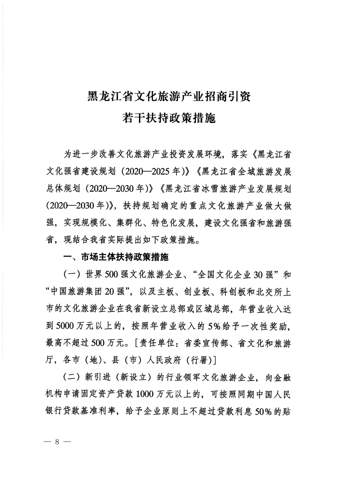 附件:黑龙江省文化旅游产业招商引资若干扶持政策措施