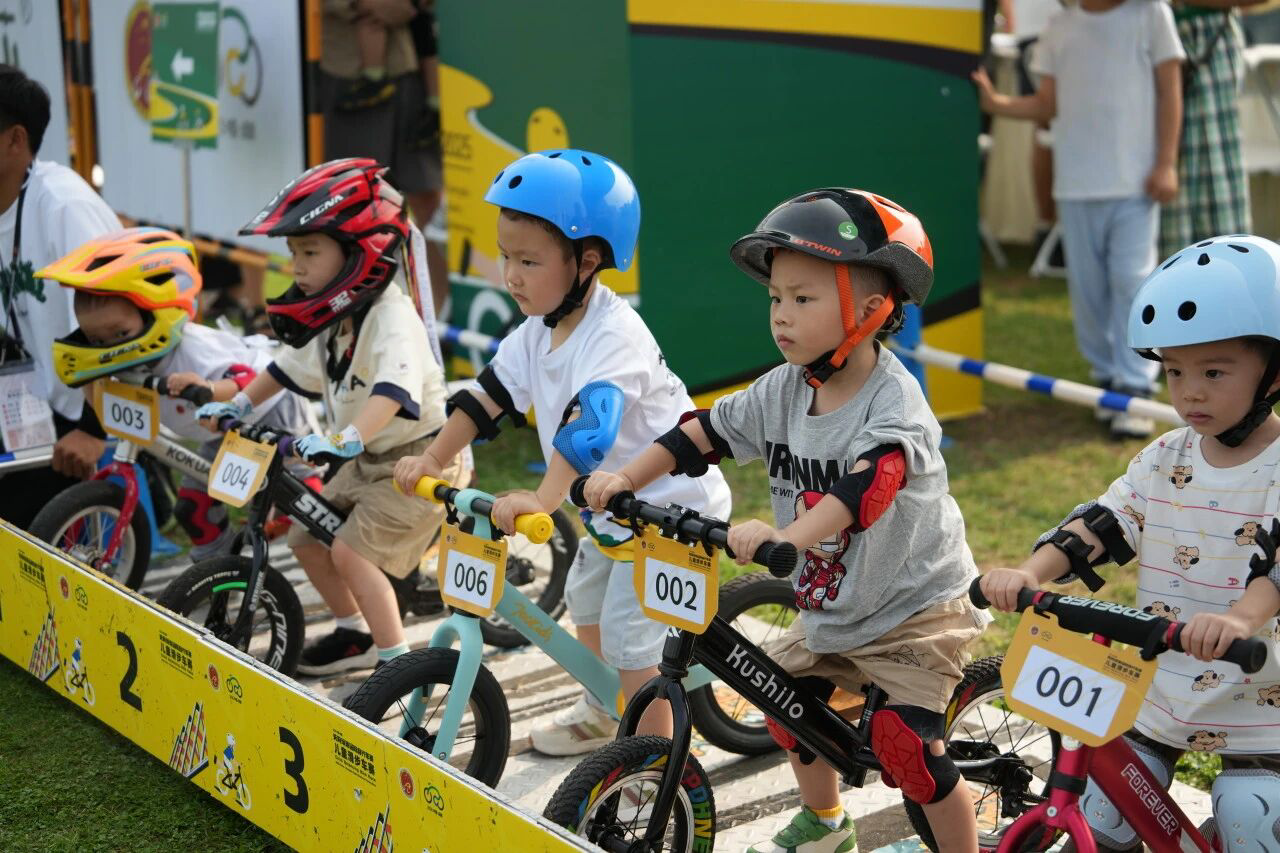 中国·成都天府绿道国际自行车赛事配套活动——儿童滑步车赛比赛现场。 微信公众号“成都天府绿道” 图