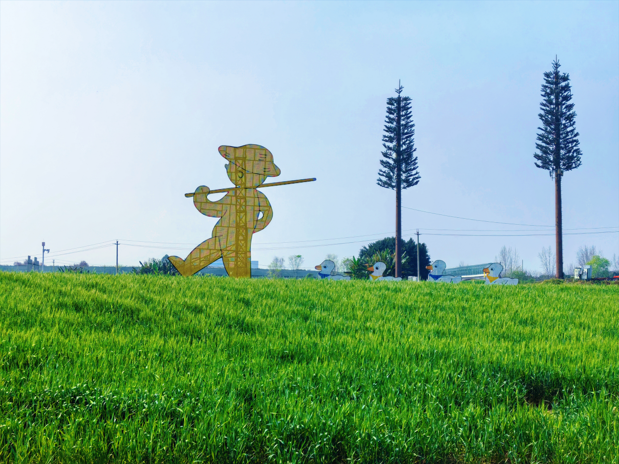 成都环城绿道旁麦田里的小设计。 澎湃新闻记者 丁珏汭 摄