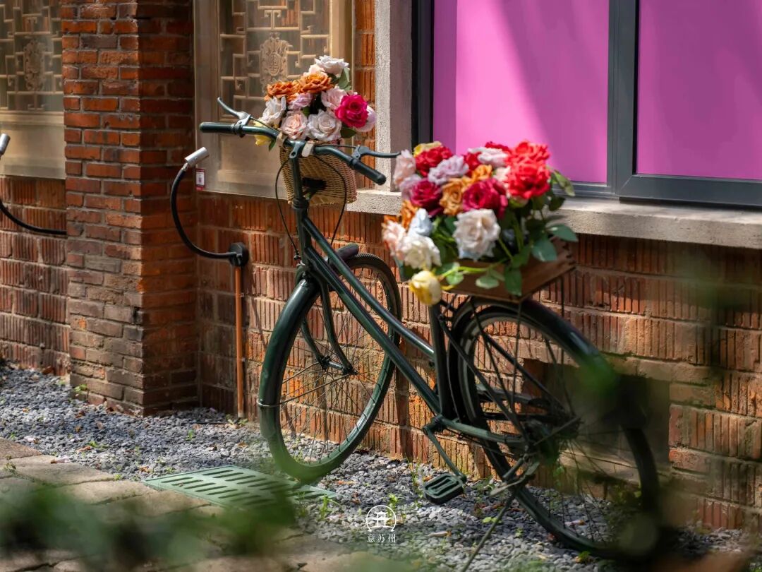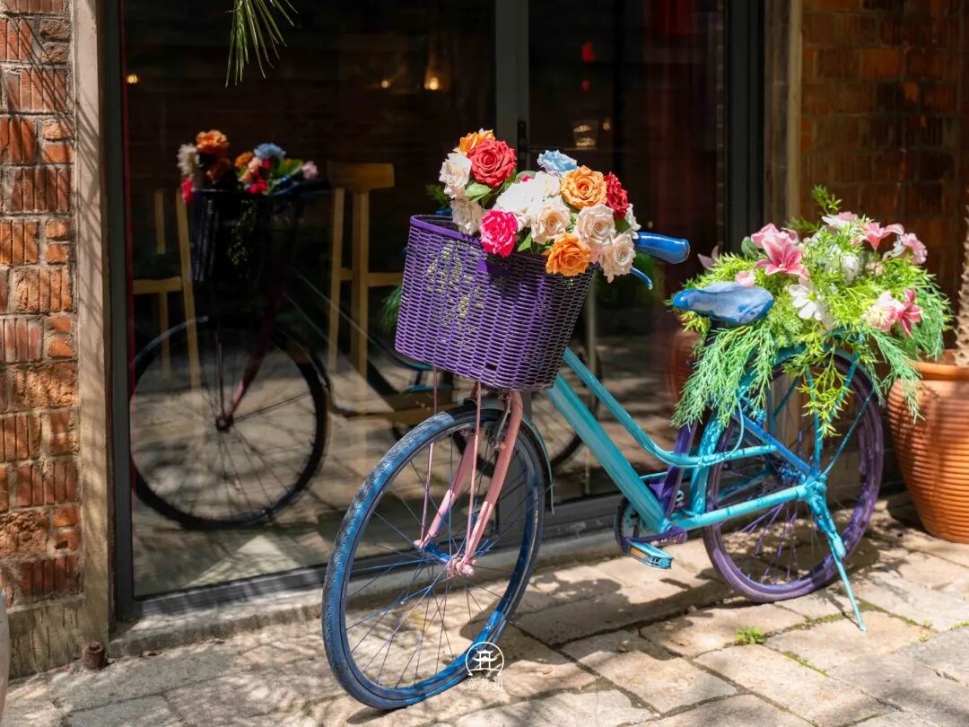 更让人眼前一亮的,是那辆插满鲜花的复古自行车。