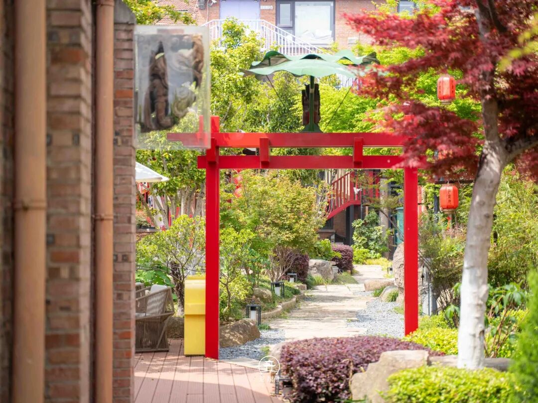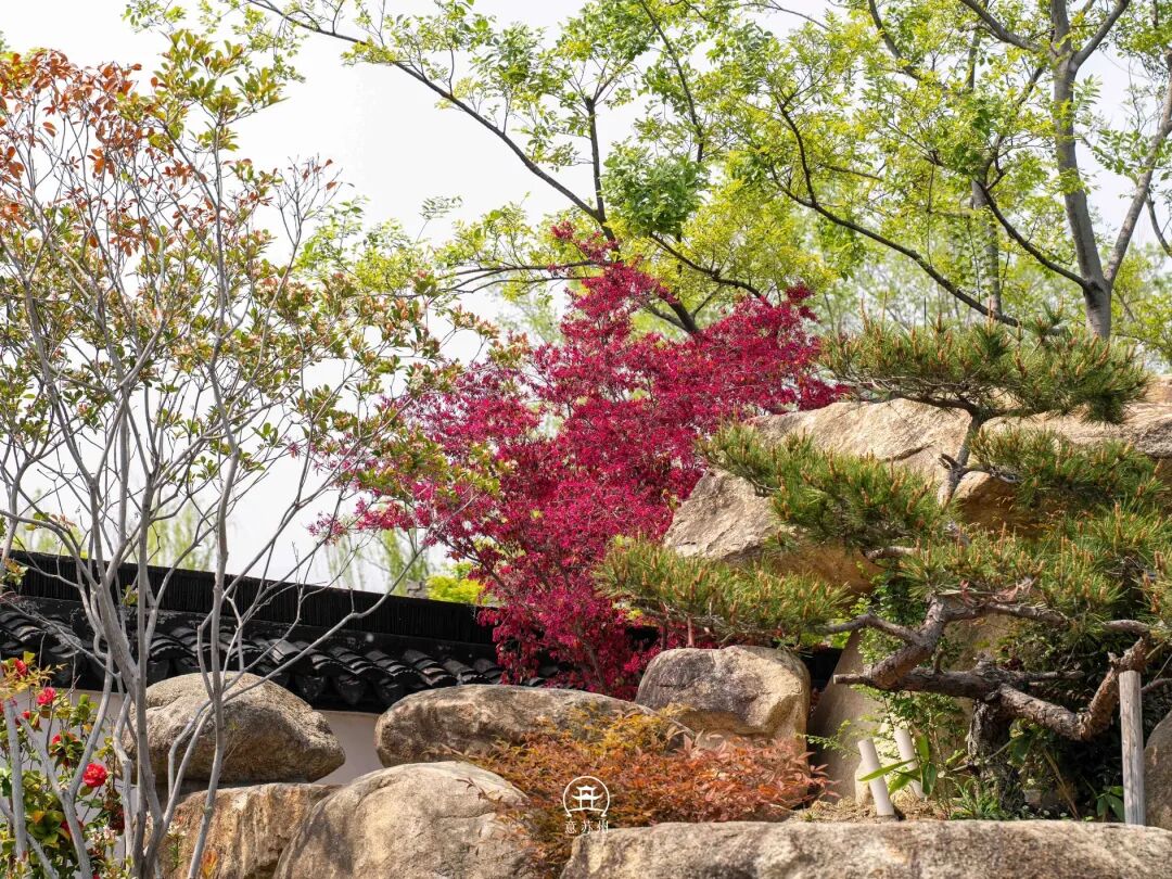 红砖黛瓦的老厂房,被重新注入了江南园林的灵秀,叠石流水绕着亭台,青松红枫映着白墙,连风里都带着春日的温柔。