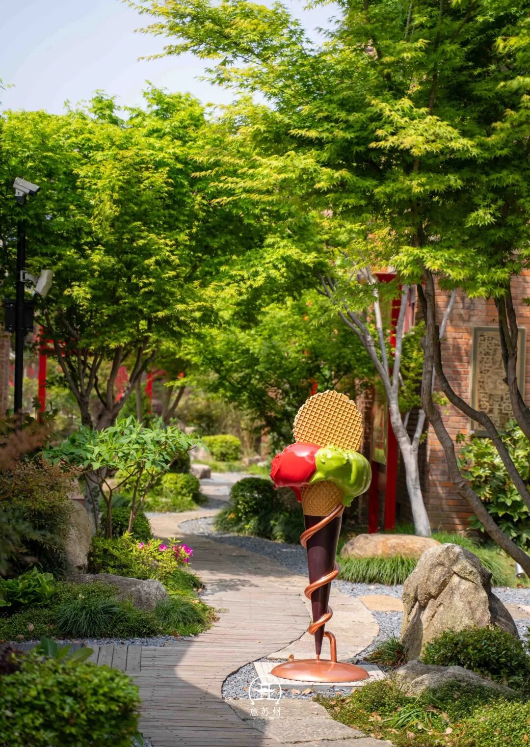 古韵木雕艺术长廊、意大利馆、网红冰淇淋店,逛累了就来一份gelato,在茅草亭下吹吹风,慢悠悠地享受春日时光。