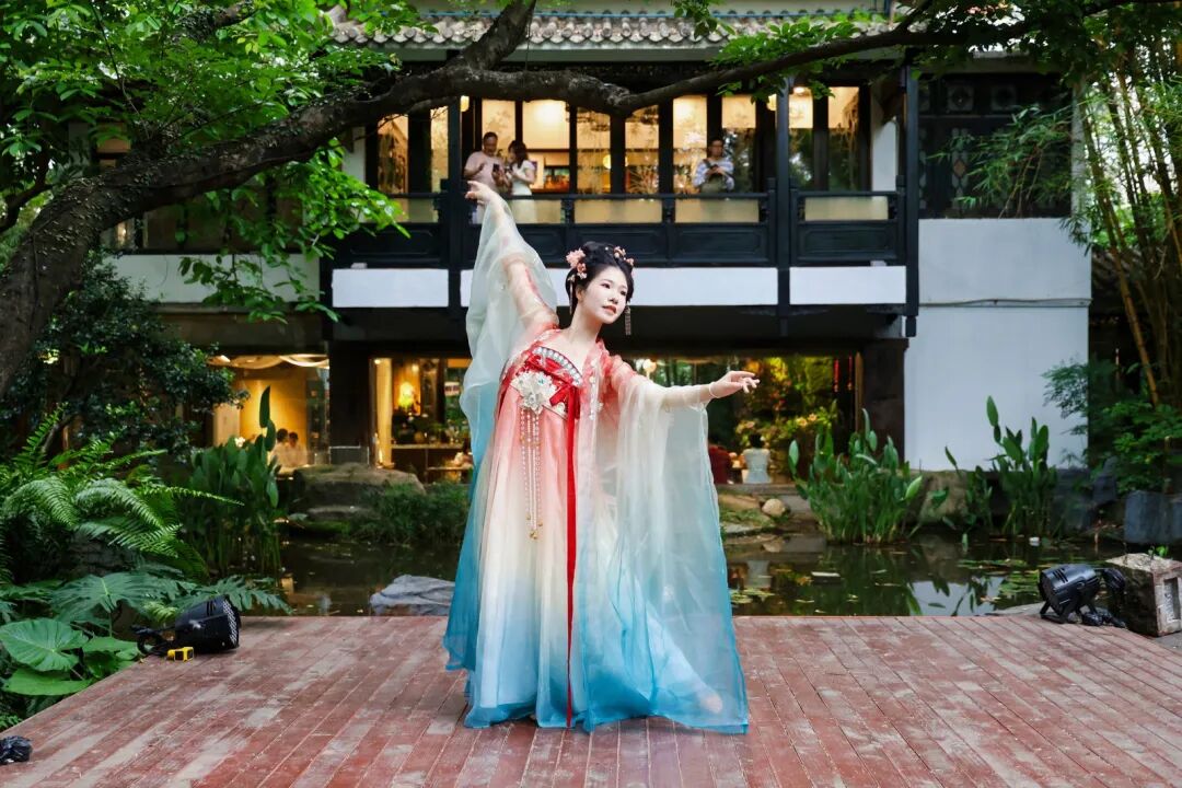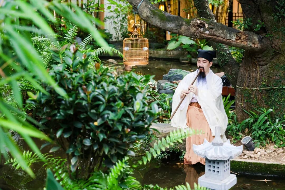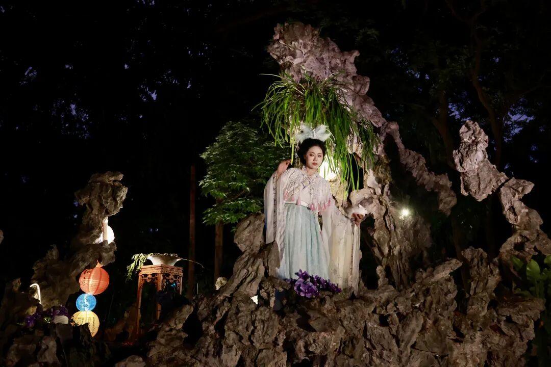 “古风十雅”以莳花、焚香、品茗、听雨、抚琴、对弈、赏画、读书、候月、寻幽为脉络,在兰圃内布设多处沉浸式场景,演员化身谢道韫、文成公主、林黛玉、卓文君、班昭、李清照、王昭君、张九龄、嫦娥、陶渊明等名人NPC,与游客趣味互动。