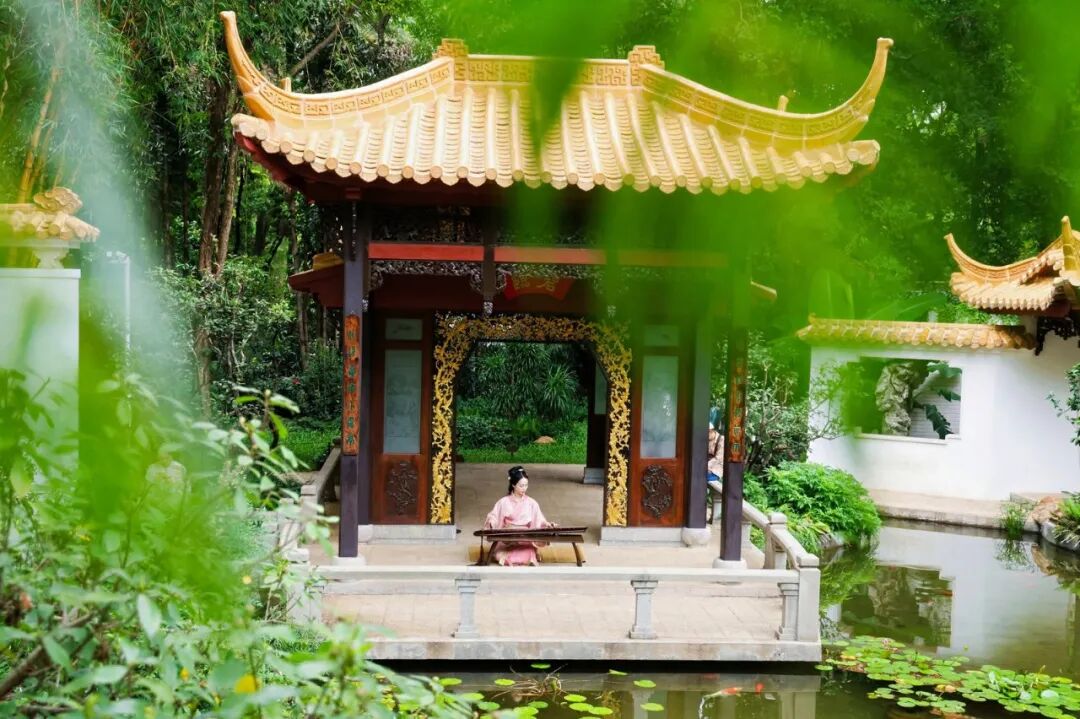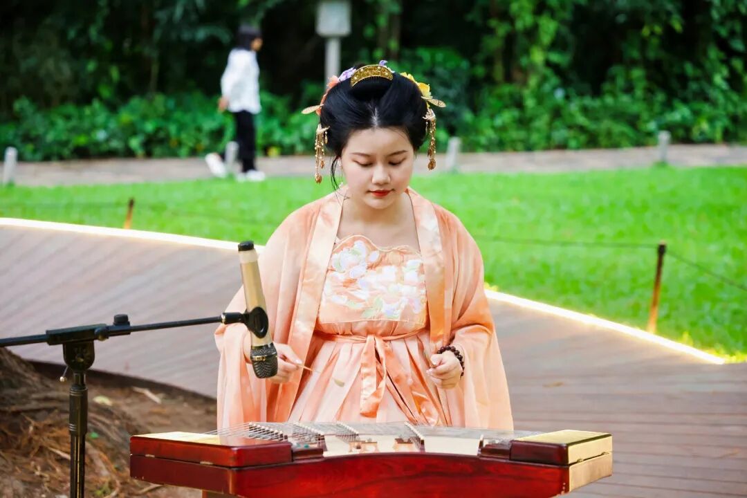 “兰缘盛荟”定点秀依托兰圃园林实景,打造多点位、沉浸式文艺展演,将传统粤剧、国风民乐、西洋器乐与青少年艺术展演融为一体。