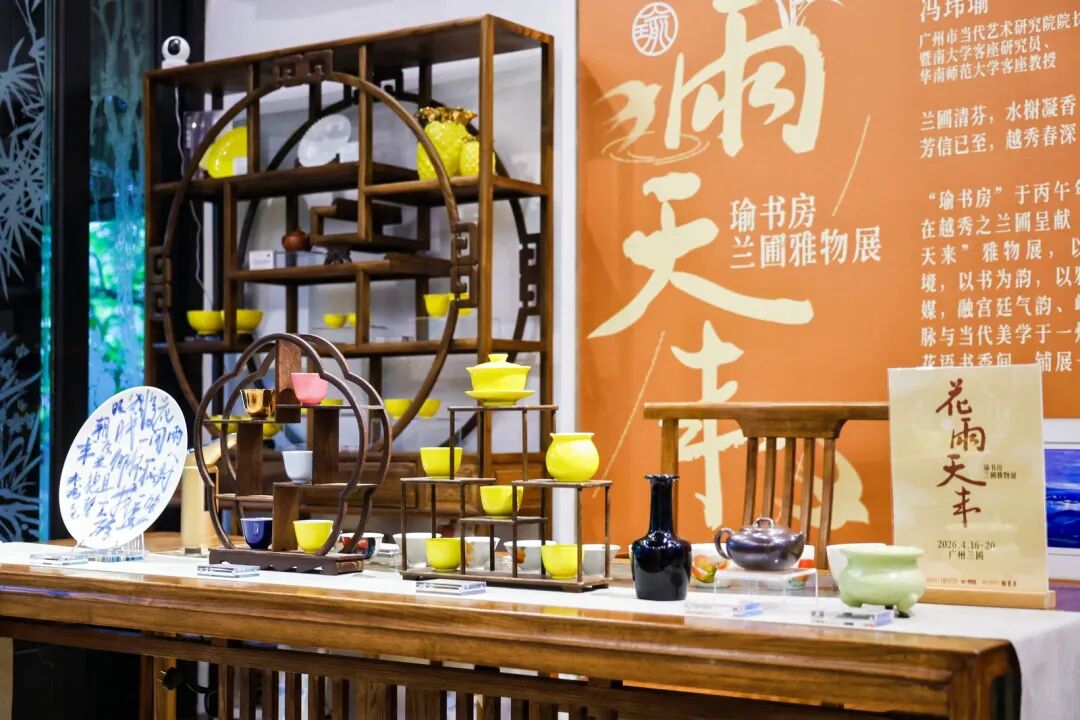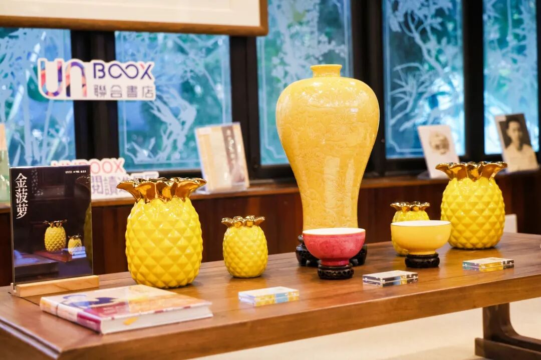 其中,著名文化品牌瑜书房推出“花雨天来——瑜书房兰圃雅物展”,融宫廷气韵与当代美学于一炉,带来三大系列展品:瑜窑黄釉系列复刻清代雍正御窑名品,推出金饭碗、金菊杯、菊瓣盘等器物,将昔日御用瓷器带入现代生活;艺术家冯玮瑜的系列作品,以“金菠萝”“繁花”等为代表,融广彩特征、东方哲学与当代抽象美学于一体,展现东方美学的独特张力。