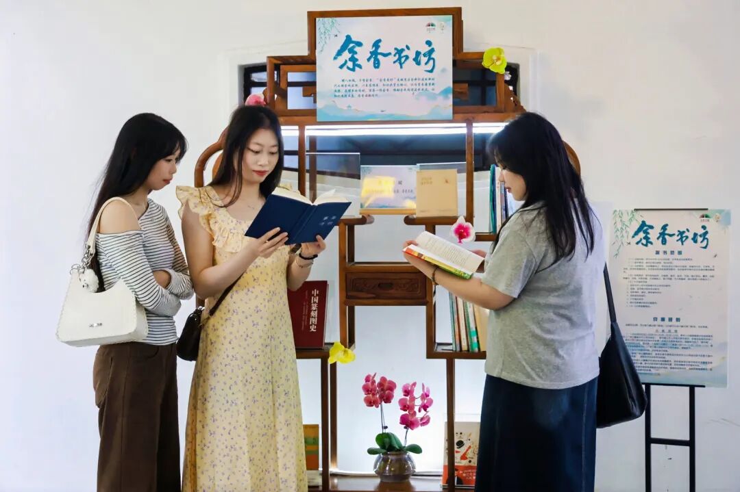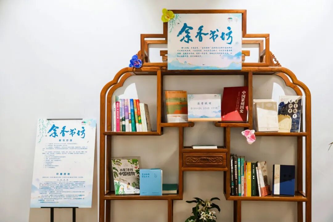 本届文旅周首创推出“余香书坊”活动,广泛发动各界人士向兰圃捐书,捐书达5册有机会获兰圃门票;同时,爱心图书安置在兰圃国香馆、适宜轩的“余香书坊”里,供广大市民现场阅读。