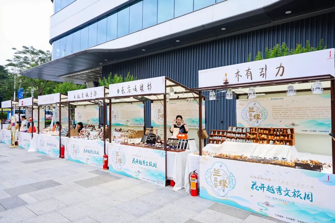 “兰缘盛荟×风物大集”在广州兰圃外广场开展,尽显岭南雅韵与市井烟火的融合,市集汇聚非遗手作、广府风物、国风美学好物与特色文创,打造沉浸式岭南生活美学体验。市民与游客可在兰香袅袅中,赏兰韵、品茶香、淘好物,感受“兰香绕市集,风物藏雅趣”的独特氛围。