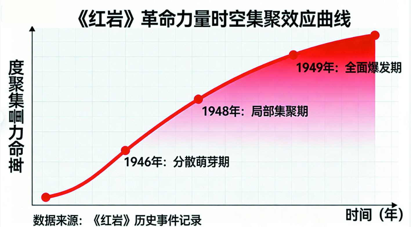“以前读《红岩》是感动,这次是想用数据验证感动的来源。”袁语霜收集了大量历史文献数据,绘制出了一张“革命力量时空集聚效应曲线图”。横轴是时间,纵轴是革命力量集聚度,曲线在1949年前后陡然攀升,每一个波峰都对应着具体的历史事件。