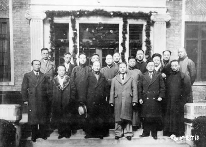 蔡元培(左三)、周仁(右二)等在1号楼(即后来的元培楼)前合影。