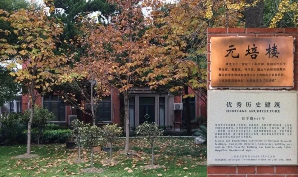 1930年,一幢二层砖木结构、红机瓦坡屋面的清水红砖小楼建成,楼里设有所长办公室和科技、人事、财务等主要办公机构,蔡元培曾在此办公,后为纪念蔡元培先生,将这栋楼命名为元培楼。