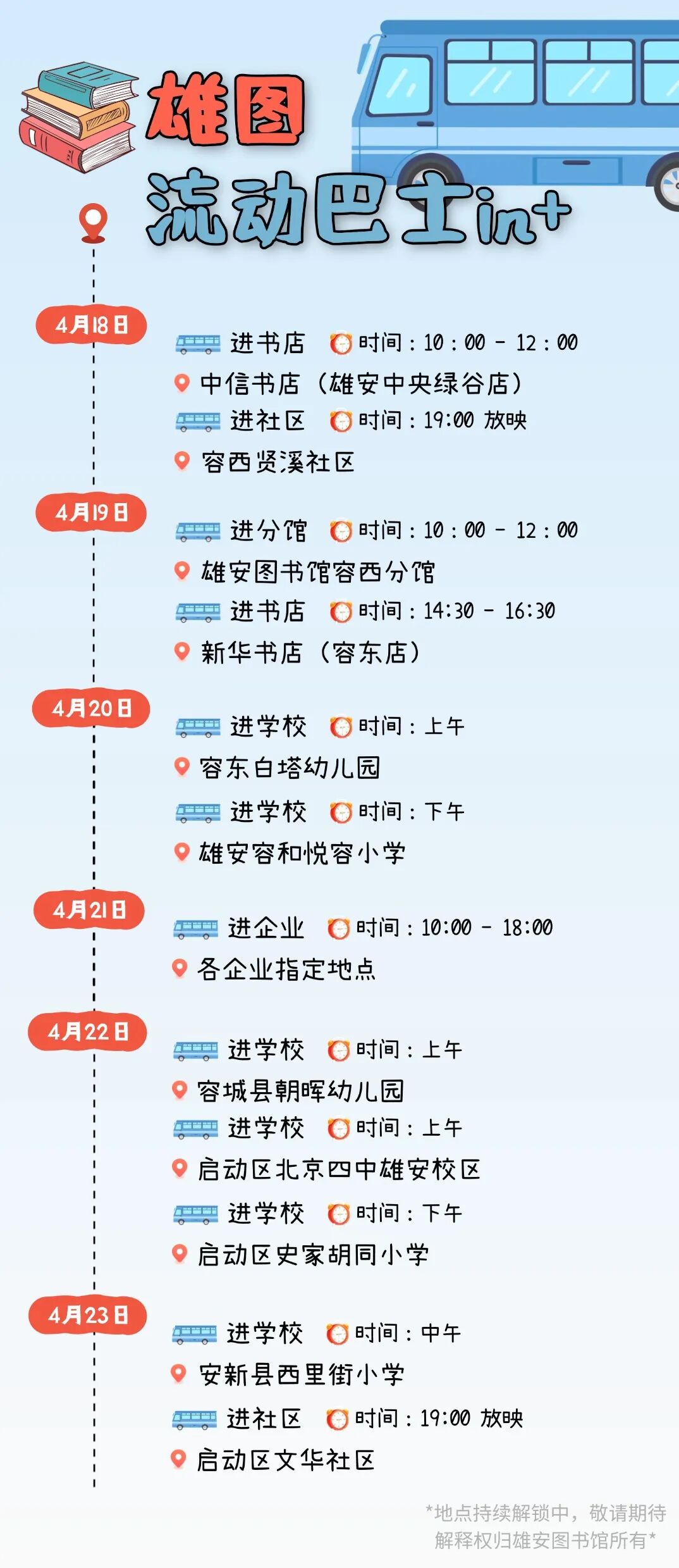 发车啦,来邂逅“雄图流动巴士”!时间点位→
