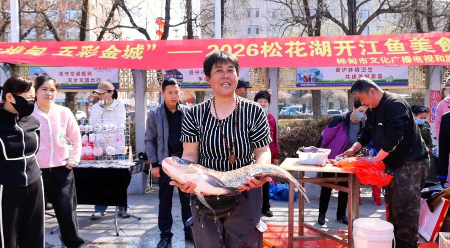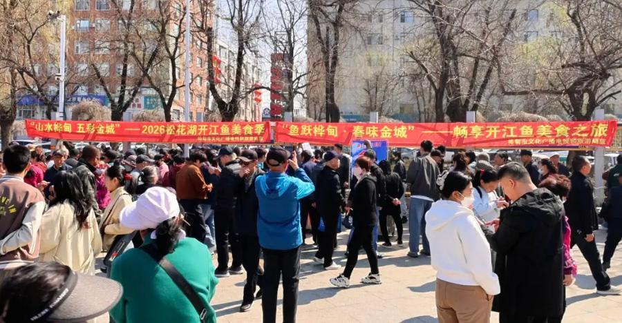 桦甸金城广场上,“鱼跃桦甸·春味金城” 畅享开江鱼美食之旅启动仪式也同步开始。本次活动以“鱼跃桦甸・春味金城”为主题,依托桦甸“三湖联珠”得天独厚的渔业资源,为市民和游客带来一场集品鱼、赏景、乐购于一体的全域文旅消费盛会。