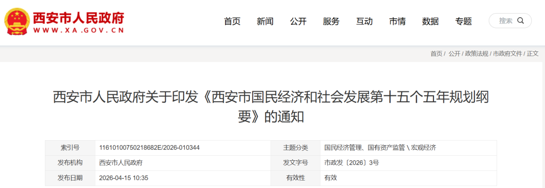 原标题:《关于印发《西安市国民经济和社会发展第十五个五年规划纲要》的通知》