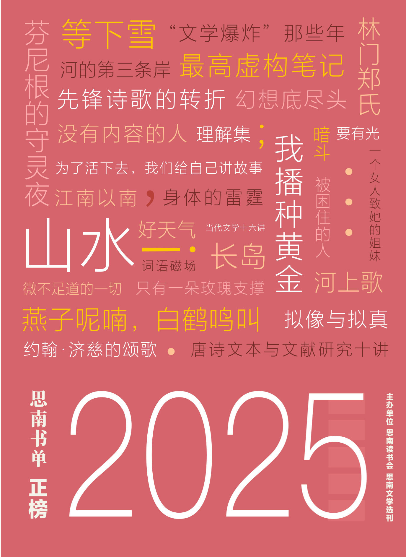 由思南读书会和《思南文学选刊》在2022年共同发起的“思南书单”也迎来第五届。最新发布的“思南书单2025”由“正榜”和“评委个人推荐榜”两个部分组成。“正榜”由13位评委通过初选提名、复选讨论、终评投票等环节,从106部图书中遴选出了30部作品,分为年度长篇小说、年度小说集、年度非虚构、年度诗集、年度人文社科(专著类)和年度人文社科(随笔类)六大类。每个大类包含三部中文原创与两部翻译。