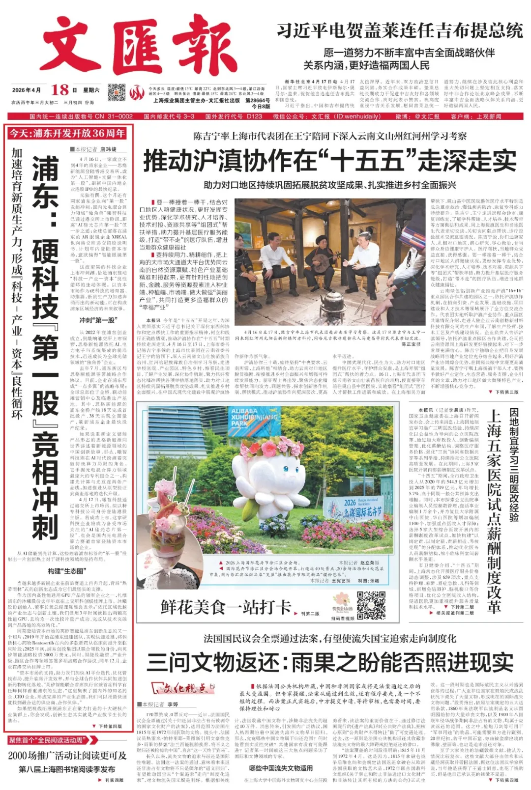 文汇报头版头条:加速培育新质生产力,形成“科技-产业-资本”良性循环