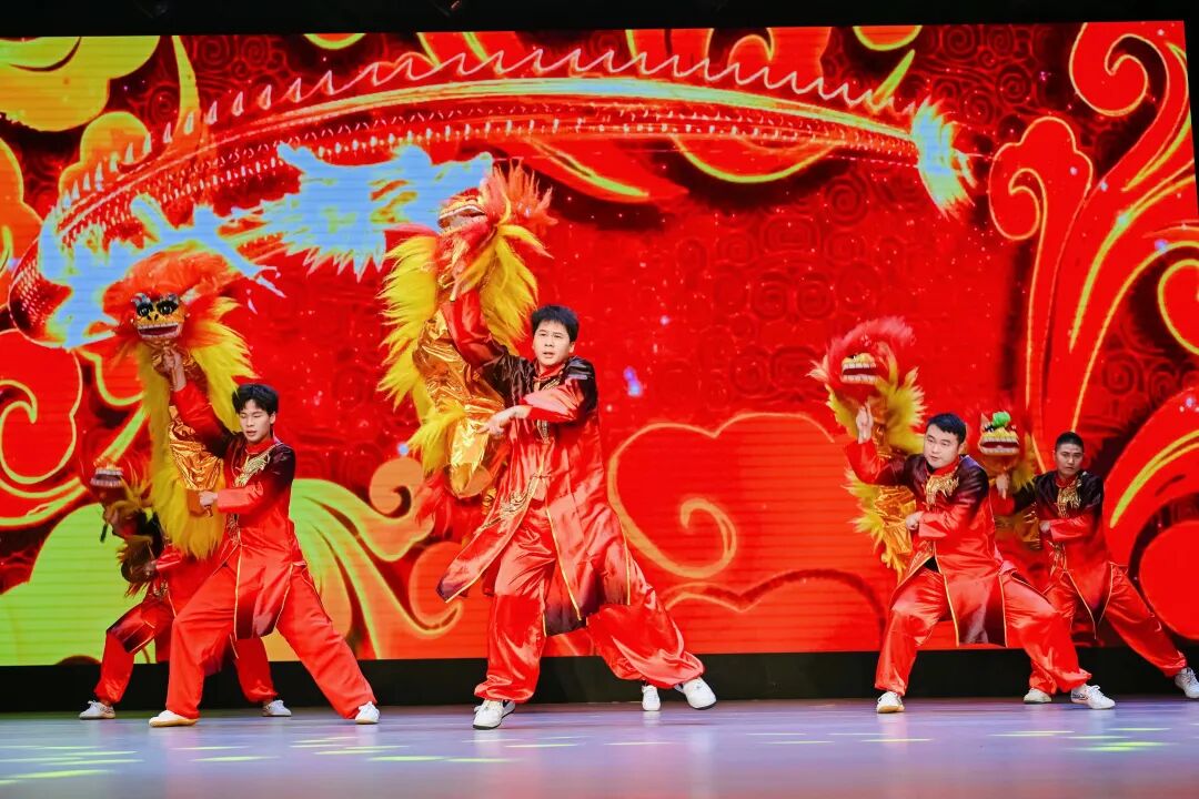 最受欢迎的,还是压轴的民俗舞蹈《龙腾狮舞》,马桥手狮舞队的队员们手持手狮,腾挪跳跃,几条长龙翻腾其间,气势磅礴。它以国家级非遗马桥手狮舞为基底,融合传统龙舞元素创编而成,将单人手狮的灵动精巧与群龙翻腾的磅礴气势融为一体,展现江南民俗的刚柔并济与喜庆欢腾。“这个手狮舞,我小时候总在庙会上见过,没想到现在年轻人还跳得这么好!”几个老人一边看一遍讨论着。