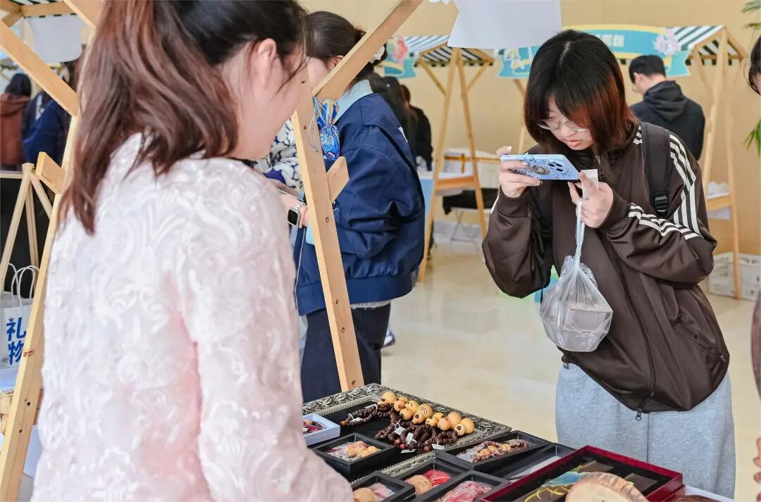 旁边的本土特色美食飘香四溢,让味蕾邂逅乡愁;宋锦、掐丝珐琅、海派绣球等文创好物融合传统与现代,让非遗走进日常;香囊制作、陶艺彩绘、盘扣手作等互动体验摊位人气高涨,让市民近距离感受非遗魅力,让文化传承从“观看”变为“热爱”。