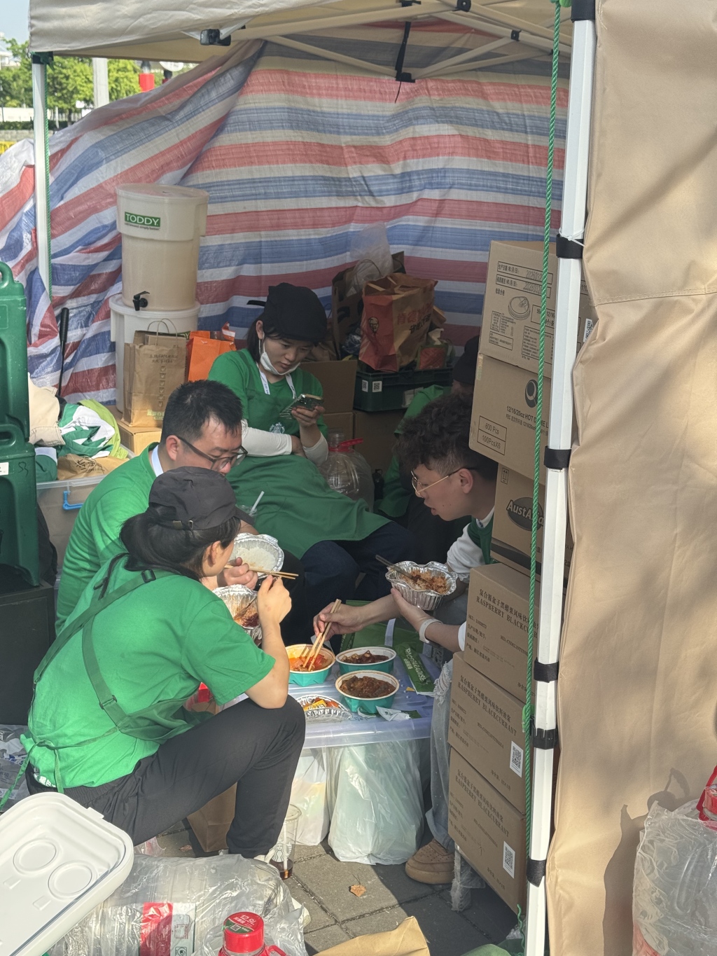 “我们早上6点在现场筹备,9点左右就迎来了客流高峰。”作为赛场周边的餐饮配套,星巴克移动餐车成为不少观赛者的饮品选择。餐车负责人徐店长告诉记者,为应对赛事带来的庞大客流,门店特意为平时仅需三四名工作人员的餐车调配了10人团队,其中2人专门负责场外搬货。“即使这样,我们还是忙不过来。中午时段,尤其是王一博比赛结束后,粉丝们出来解决中饭、购买饮品,我们的店员忙得不可开交。”