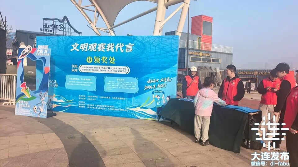 由市文明办、市体育局等单位主办,大连云、华连生朋朋修脚、大连市小善大爱公益服务中心等单位提供支持的“文明观赛我代言”主题活动,今天下午在梭鱼湾足球场外火热开启第二轮“线上抽奖”线下领奖活动,中奖的球迷朋友们早早来到“文明观赛我代言”领奖点,凭手机号顺利领走了专属礼包——定制助威服一穿,围巾一戴,抽绳背包一背,仪式感直接拉满!