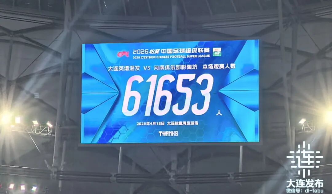 原标题:《2:1!四连胜!大连英博主场61653人助威!》