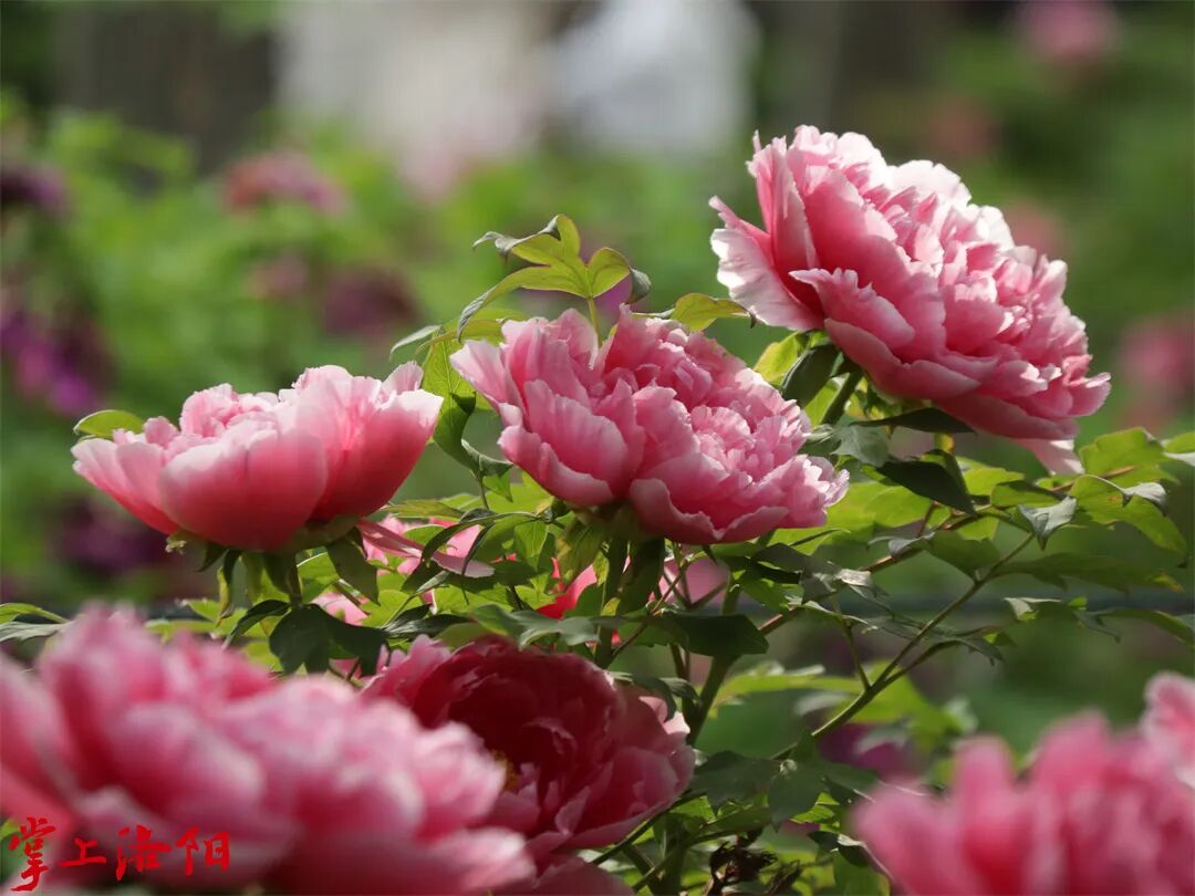 国际牡丹园:全园共有约540个品种牡丹开放,主要分布在锦绣园、九色园、万芳园、华夏园以及二环路等处。其中,盛开的牡丹品种有楼兰美人、翰墨丹青、麟凤、紫红殿、八束狮子、黄冠、皇嘉门、岛大臣、雪莲、连鹤、镰田锦、金玉交章、吉野川、火鸟、芳纪、岛锦、珠光墨润、墨润绝伦、绿幕隐玉、太阳等;初开的牡丹品种有海黄、瑞旭红、新国色、翁狮子、白妙、长寿乐、豆绿、春柳等。园内荷包牡丹、金丝楸、鸢尾、玫瑰忍冬、黄刺玫、猬实等竞相绽放。后续将有2000盆精品牡丹盆花和牡丹鲜切花花墙在“林下花境”处供游客观赏。