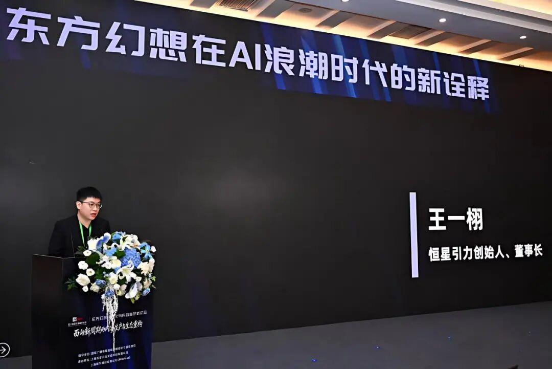 恒星引力创始人、董事长王一栩的演讲题目是《东方幻想在AI浪潮时代的新阐释》。他没有把重点放在AI能做什么,而反复强调一件事:“爱与和平”的东方叙事内核不能变,技术是服务于这个内核的工具。“AI帮助我们让内容更精品,让东方幻想更真实,让内容拥有更多可能性”精品在前,真实在前,可能性在后。技术是手段,内容是目的。