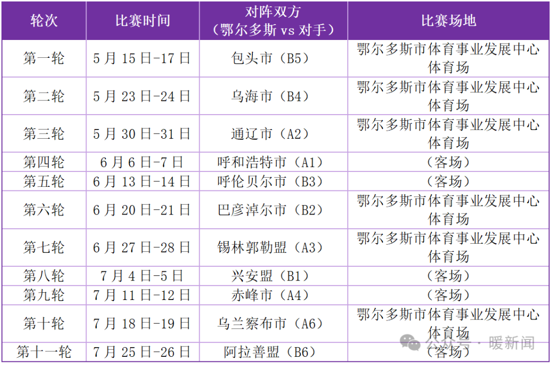 首轮:鄂尔多斯队VS包头队!蒙超鄂尔多斯队11轮常规赛赛程出炉→