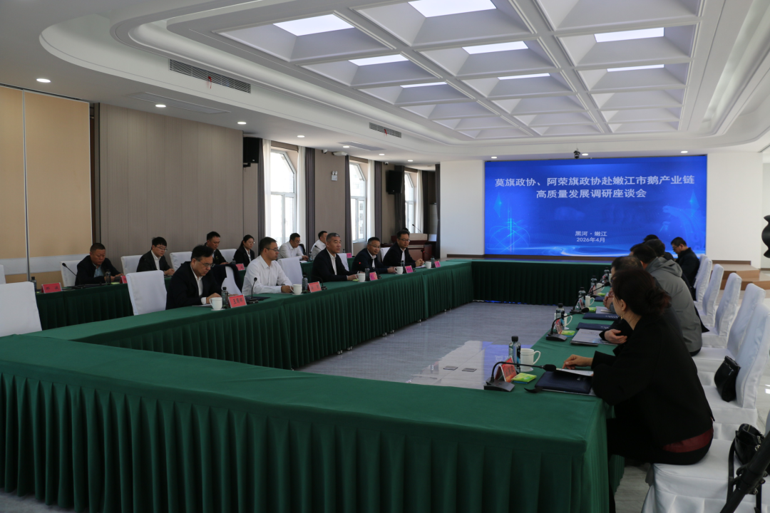 4月16日,莫旗、阿荣旗政协考察团赴嫩江市,围绕鹅全产业链高质量发展与县域经济建设开展专题调研。嫩江市政协主席常勇等陪同调研。