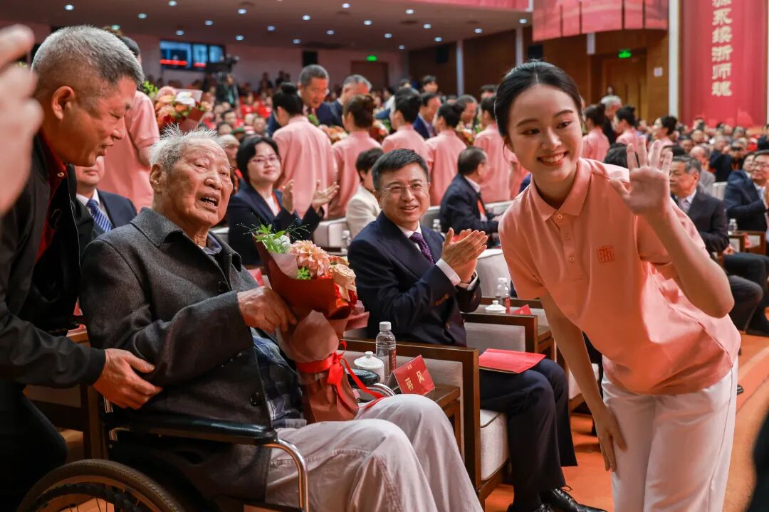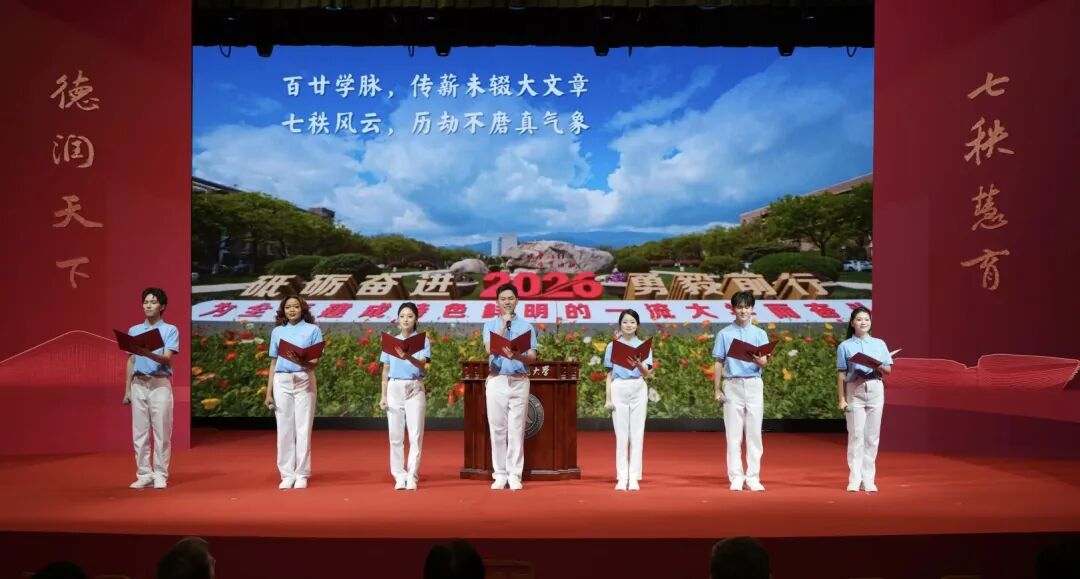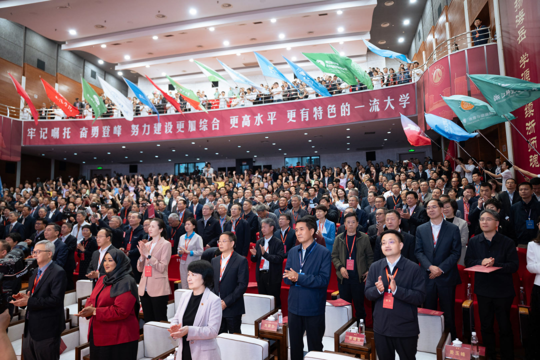 在庄严的国歌声中,大会拉开帷幕。会场悬挂“教泽润春秋,襟抱长涵天下志;铎声扬海岳,学源永续浙师魂” “七秩芳华,钱塘潮涌,历沧桑砥砺耕耘,铸就师道丰碑昭日月;千秋文脉,婺水波兴,经风雨德润慧育,涵养教苑高标耀乾坤”等垂幅,与会人员全体肃立致敬,现场氛围庄重热烈。