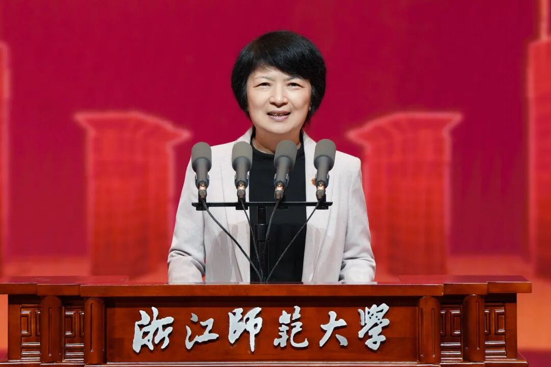 华东师范大学党委书记梅兵代表兄弟高校致辞,向浙江师范大学全体师生员工和海内外校友致以热烈祝贺。她表示,华东师范大学与浙江师范大学同属师范教育方阵,有着深厚渊源和真挚情谊,共同亲历了我国高等教育包括教师教育从小到大、从弱到强的发展历程,初心不改共守教师教育鲜明底色特色,共担立德树人强师强国使命。面向未来,华东师范大学愿与浙江师范大学继续携手并肩,共担兴教强国新使命,为加快建设教育强国、实现中华民族伟大复兴作出新的更大贡献。