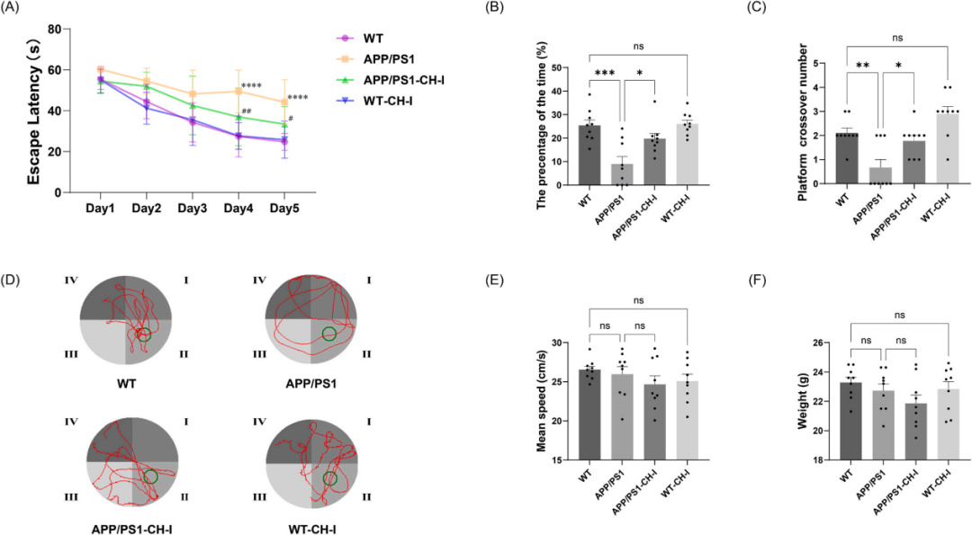 图一 CH-I改善了APP/PS1小鼠的认知障碍