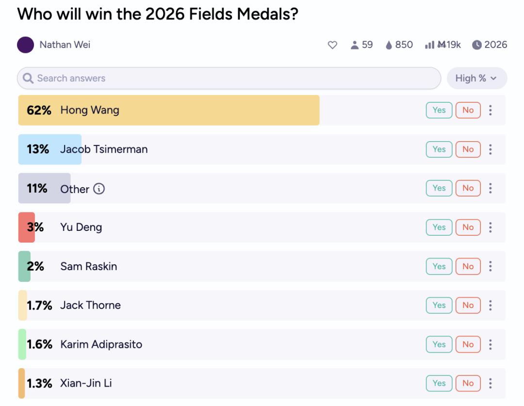 此前,王虹一度登上2026菲尔兹奖得主赔率榜首