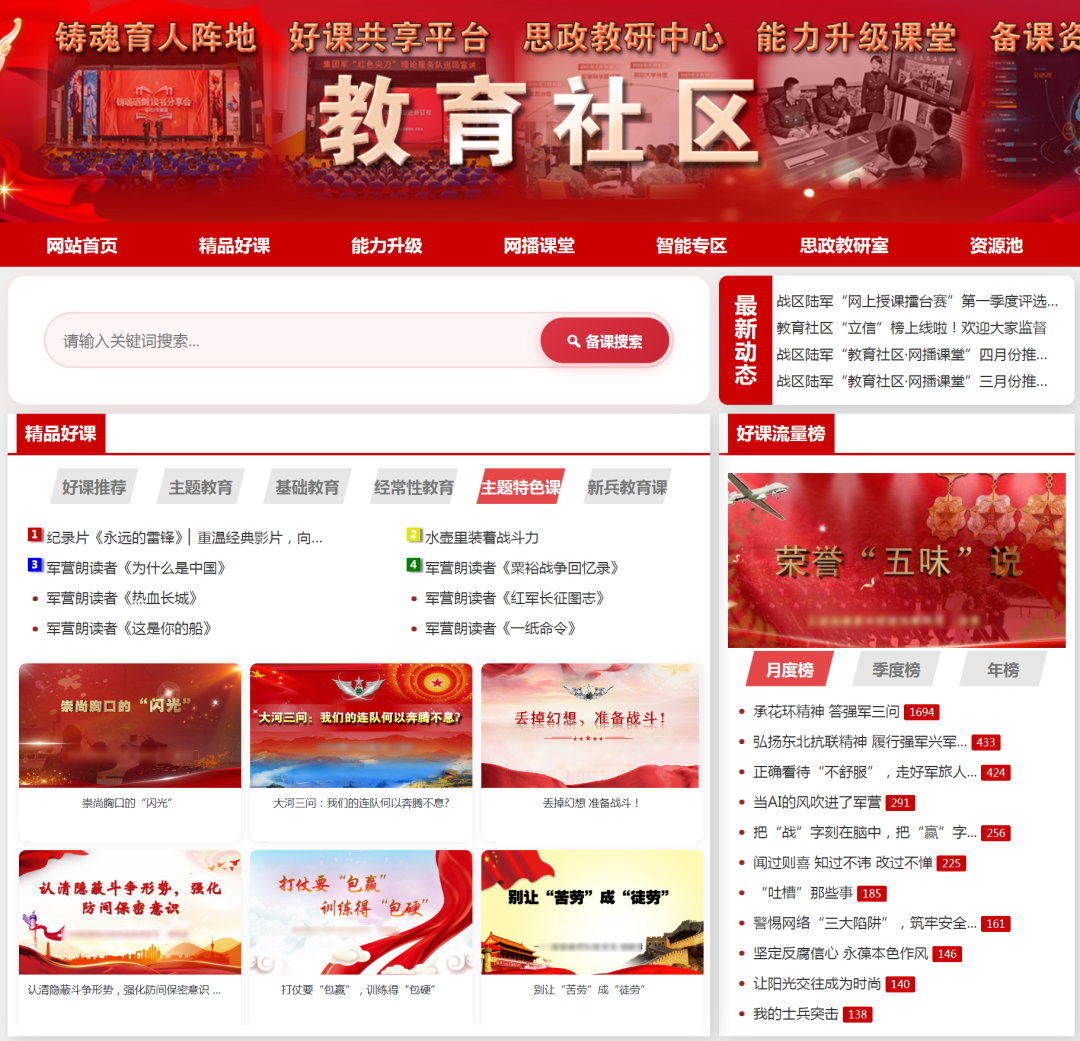 欢迎各位政治教员登录战区陆军强军网“教育社区”,同台竞技,尽展风采!