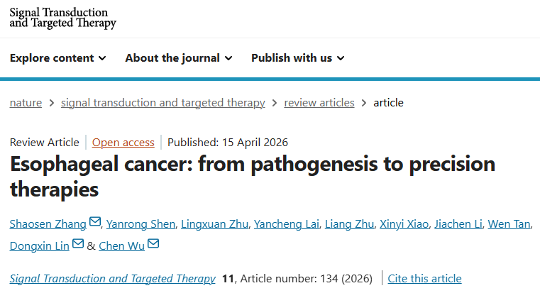 食管癌,这一长期位居全球癌症相关死亡第七位的消化道恶性肿瘤,因其症状隐匿、诊断延迟和治疗手段有限,患者五年生存率长期徘徊在10%-30%之间,构成了沉重的全球健康负担。近日,中国医学科学院吴晨/林东昕/张少森团队在国际知名期刊《Signal Transduction and Targeted Therapy》发表一篇重磅综述:系统梳理了食管癌从流行病学、发病机制到早期干预与精准治疗的最新进展,为改善这一“隐匿杀手”的临床结局描绘了清晰的路线图。