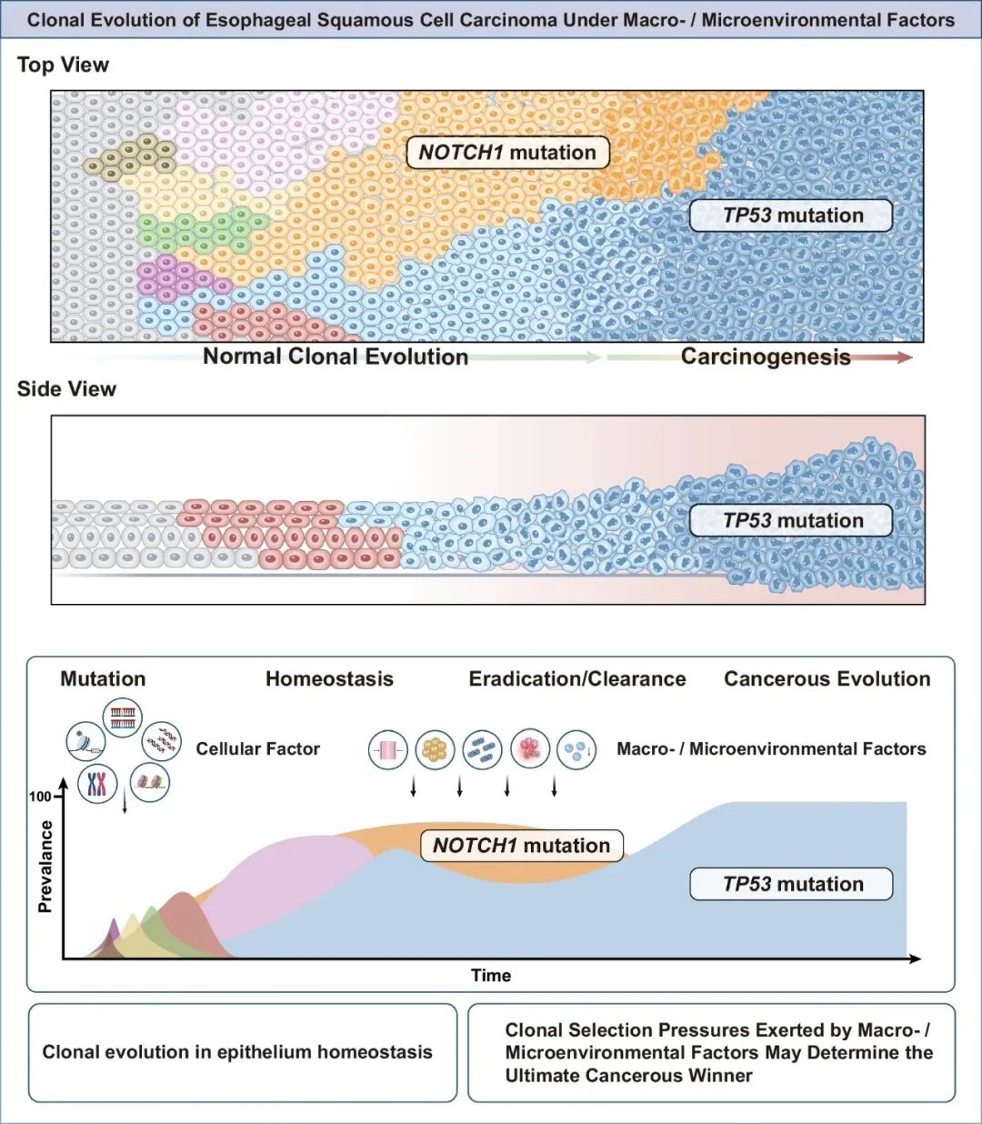 食管鳞状细胞癌中从多克隆到单克隆进展的克隆竞争与进化过程(以NOTCH1/TP53突变为例)