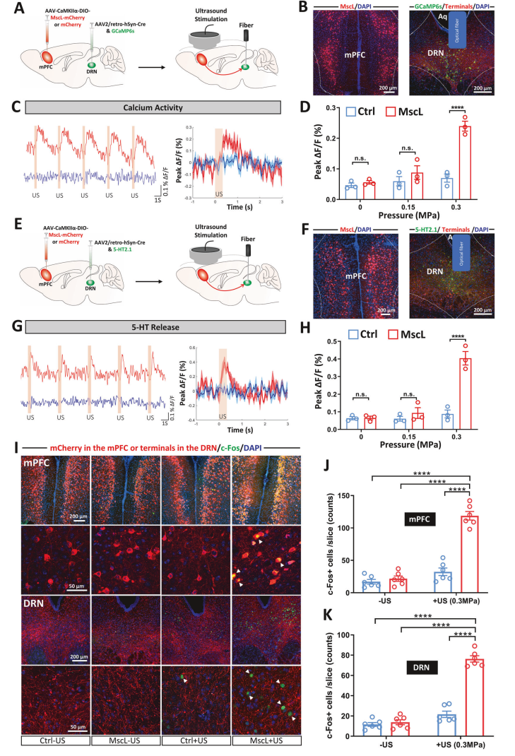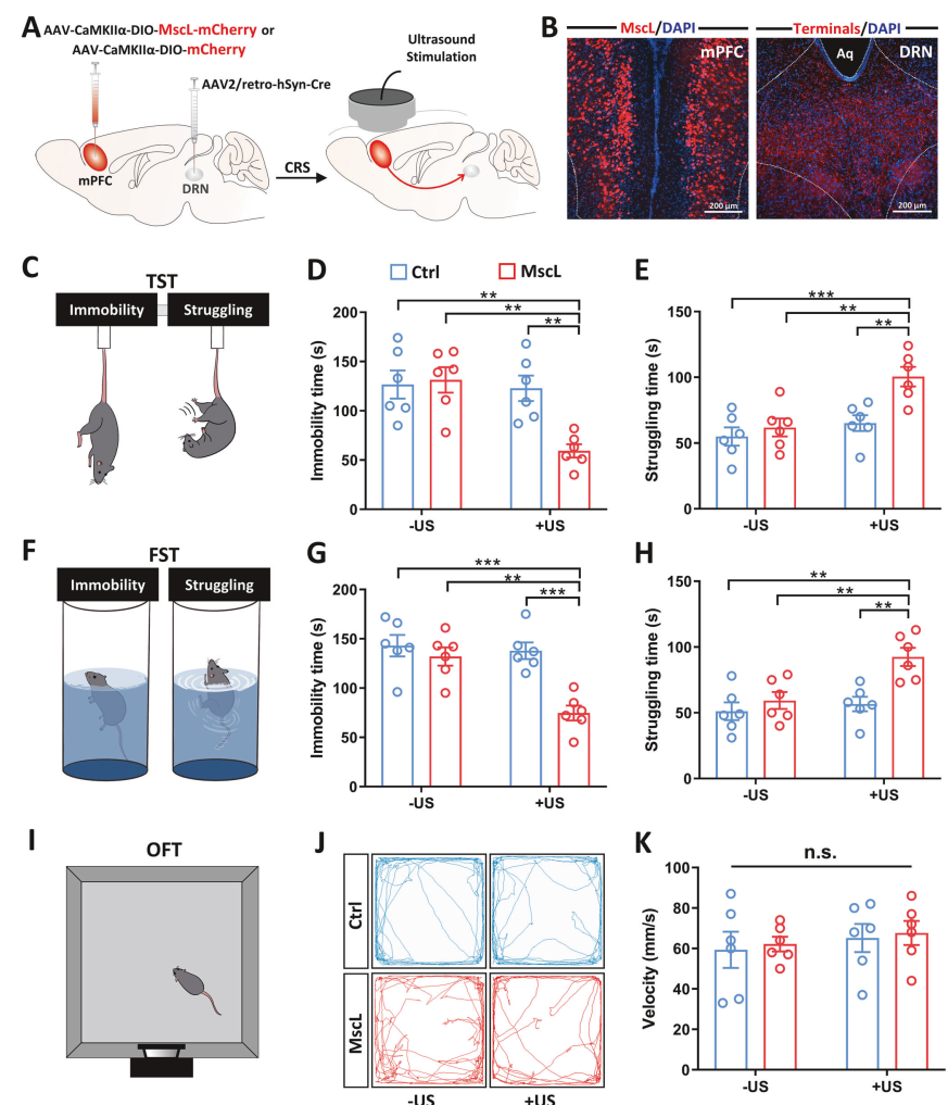 一次超声刺激,快速逆转小鼠抑郁状态!港理工孙雷团队揭示声遗传学调控mPFC-DRN通路新机制