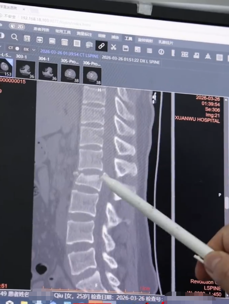 王居勇进一步解释,小秋的腰椎骨头已被压塌,更危险的是,一块骨块向后移位,直接挤压进神经管,原本完整的神经管被挤得只剩约1/3宽度,“这很容易引发下肢功能异常,目前她已经出现肛门括约肌收缩无力、大小便控制不佳的症状,情况十分危急。”