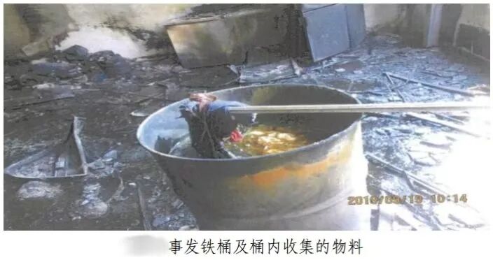 紧接着,燕某忠和廖某平戴着手套拿棉碎布擦拭吸附泄漏到地面的物料,向某斌到同层楼另一个仓库拿来一个200L型的空铁桶来盛装泄漏废物和用过的碎布。处理过程中,燕某忠由于手上沾有物料,前往小仓库西侧约30米外收发货棚处洗手,而廖某平则到小仓库东侧约30米外材料仓库取纯棉布碎以清洁地面。