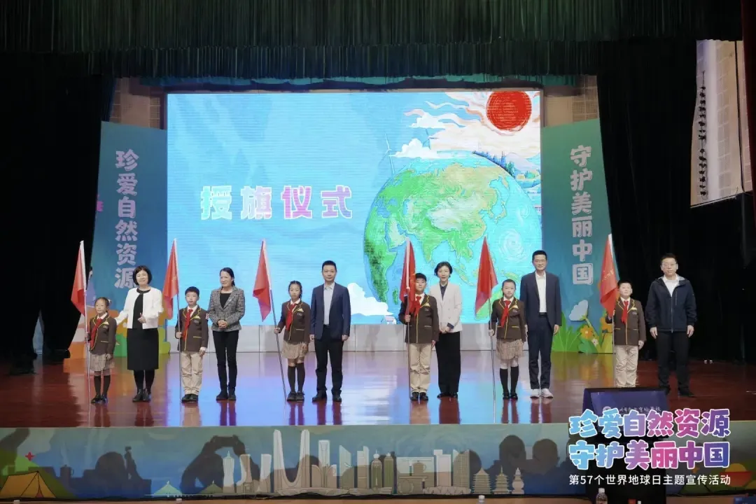 4月16日,杭州市崇文实验学校里春意盎然、欢声阵阵。在第57个世界地球日即将到来之际,一场以“珍爱自然资源 守护美丽中国”为主题的纪念活动在这里隆重举行。