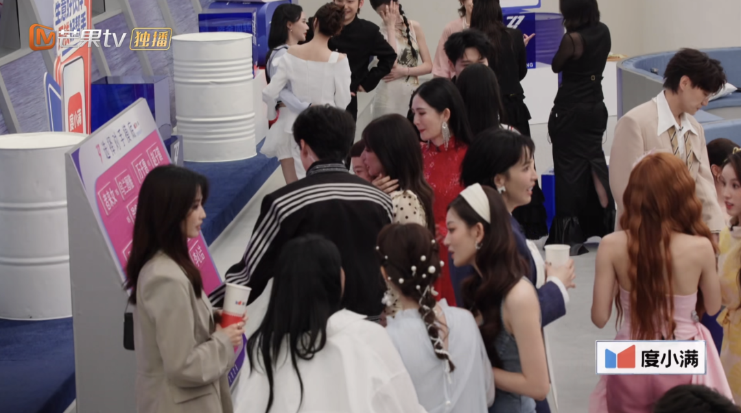 导演考虑得周到,圈内好友的到来,既能带来附赠的人气,又能消解嘉宾面对陌生环境和直播镜头的紧张。但是导演没有想到的是,这么点的空间塞进这么多的人,会很混乱。