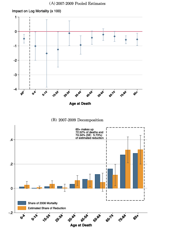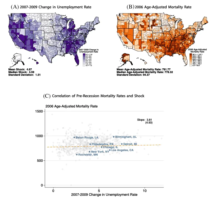 参考文献: Finkelstein, A., Notowidigdo, M. J., Schilbach, F., &Zhang, J. (2025). Lives versus livelihoods: The impact of the Great Recession on mortality and welfare. The Quarterly Journal of Economics, 140(3), 2269–2328.
