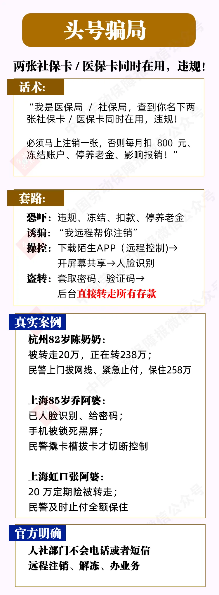 原标题:《紧急!八旬老人险失285万!6大社保骗局一图说清,快转给爸妈!》