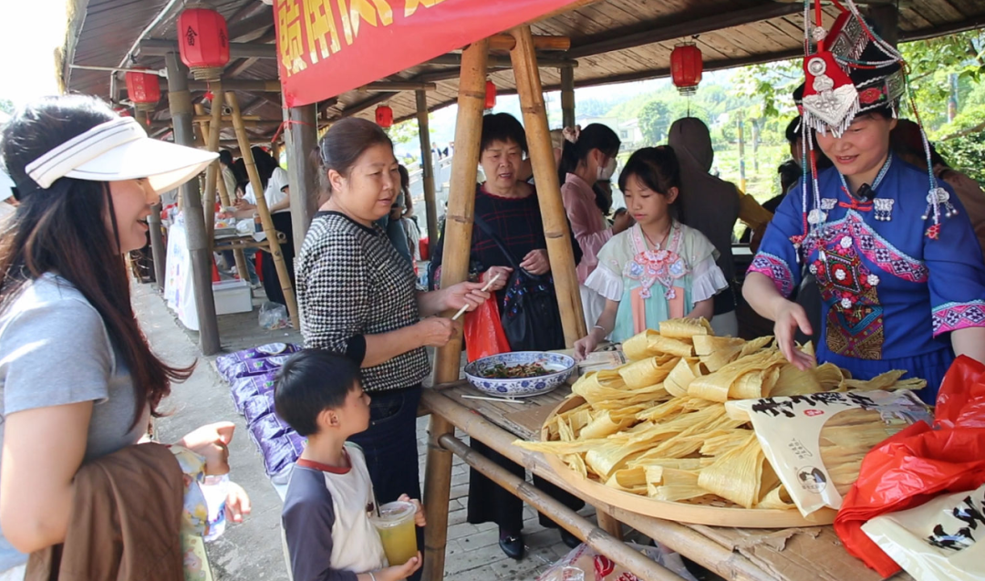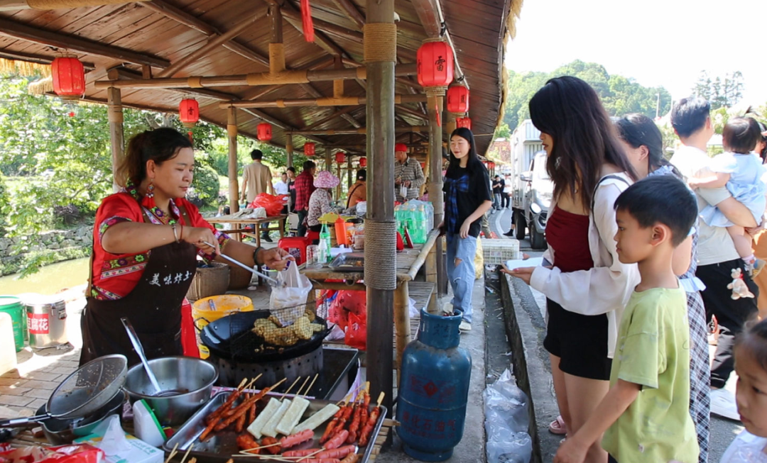 洞头乡下东坑村村民 朱金芳:活动吸引来了特别多的游客,我们也可以受益,做生意我们大家都有收益。“三月三”是这边的民族特色,大家都被民族特色吸引过来了。