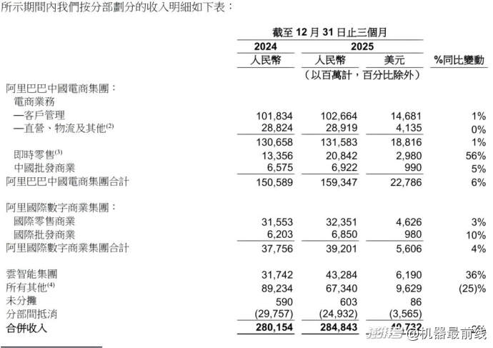 图源:阿里巴巴2025年十二月底止季度业绩公告