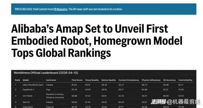 从今年2月发布具身导航基座模型ABot-N0,到3月31日全量开源具身操作基座模型ABot-M0,在Libero-Plus基准上任务成功率达80.5%,较此前标杆方案Pi0提升近30%。短短三个月内,高德Abot-world系列模型已在15项国际权威评测中拿下第一,测试成绩超过了谷歌与英伟达等企业及研究机构。高德此时推出四足机器人,或将成为阿里将“空间智能”转化为物理应用的关键一跳。