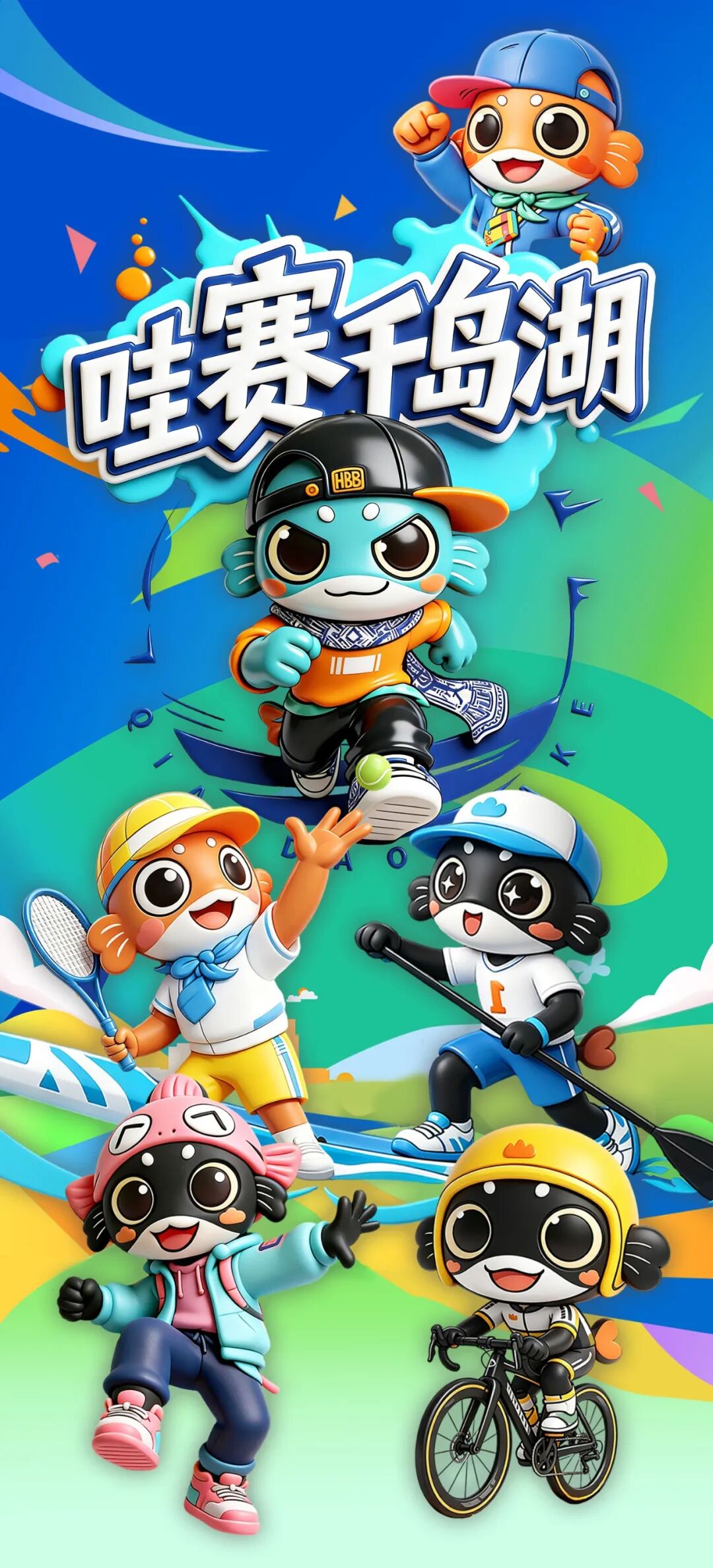 全新的“湖包包”IP天团不仅会出现在各大赛事的奖牌、赛道视觉、参赛包和周边文创中,还将作为“千岛湖运动体验官”,在线上线下与你惊喜互动!