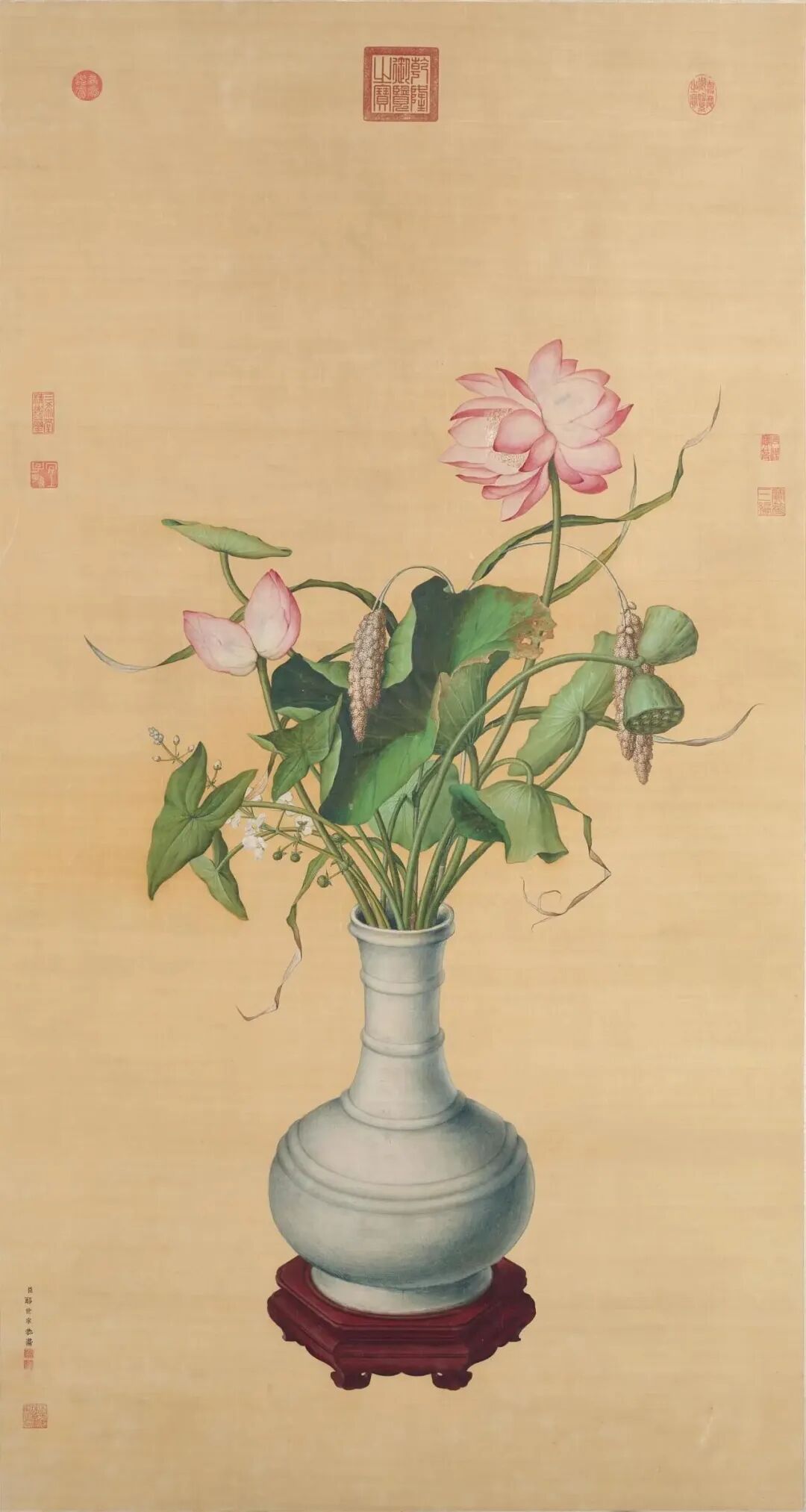 一幅由清宫廷画家郎世宁创作的《池莲双瑞》图近日上拍,最终成交价为150,000,000港元。此作绘于雍正元年,是现存郎世宁最早清宫作品之一,融合中西画法,寓意祥瑞,曾历经溥仪、张学良、宋美龄等显赫人物递藏。